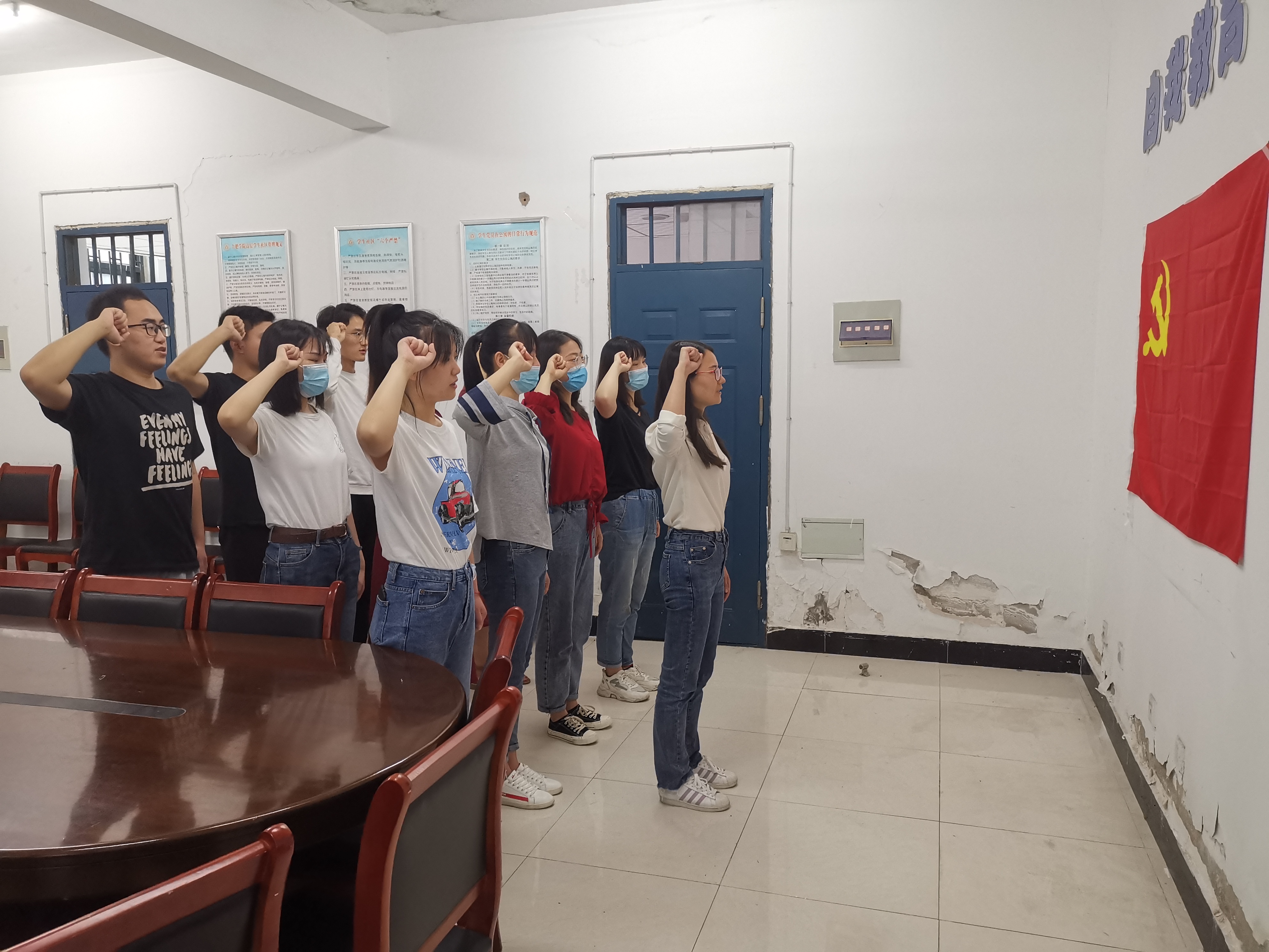 活動(dòng)伊始,魏老師簡(jiǎn)要介紹了本次活動(dòng)的流程。活動(dòng)主要分為三部分,首先魏老師對(duì)本學(xué)期黨支部工作做簡(jiǎn)要總結(jié),并指出支部工作的不足與尚待改善之處,同時(shí)也對(duì)相關(guān)支部工作的圓滿(mǎn)完成表達(dá)了肯定。緊接著,魏老師帶領(lǐng)大家共同回顧學(xué)習(xí)了從1911年辛亥革命到1921年中國(guó)共產(chǎn)黨成立這段時(shí)間內(nèi)的歷史故事,感受老一輩共產(chǎn)黨人在風(fēng)雨飄搖的時(shí)代為祖國(guó)赴湯蹈火的精彩歷程,不忘來(lái)路,才能永葆本色、不改初心。最后,全體參會(huì)黨員起立,舉起右手,在領(lǐng)誓人魏老師的逐句領(lǐng)誓下,慷慨激昂,莊嚴(yán)面對(duì)黨旗進(jìn)行宣誓,表達(dá)對(duì)黨的忠誠(chéng)以及為共產(chǎn)主義事業(yè)奮斗終身的決心。