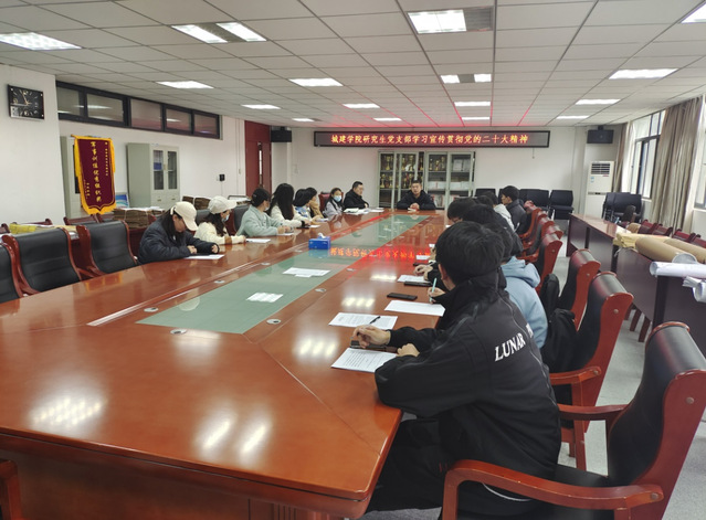 2022年11月30日下午,城市建設與交通學院研究生黨支部在41號樓三樓大會議室學習宣傳黨的二十大精神,院黨委副書記張永軍(主持工作)出席會議,支部書記與全體研究生黨員參加。