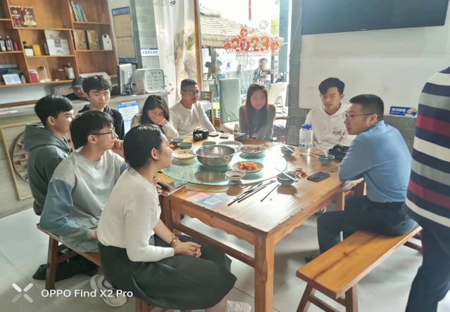 2023年4月14日早8時,城市建設(shè)與交通學院院長華建兵、副院長劉偉、實驗實訓中心主任楊睿、教學辦公室陳輝等人來到黃山市黟縣宏村,探望本次在宏村測繪和寫生的建筑學學生。