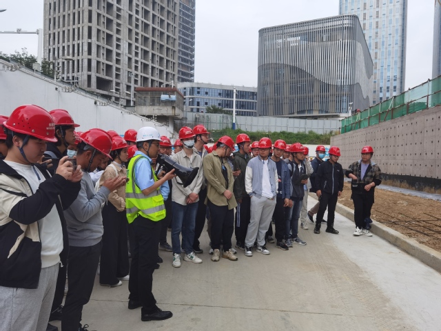 現場施工項目負責人對本次生產實習活動高度重視,對學院學生的到來表示歡迎,并認真組織、安排相關技術人員帶領廣大師生進行場地參觀。在本次項目實習中,同學們觀看了深基坑開挖、支護、基礎施工等重要結構的施工過程,并與現場負責技術工程師做了深入的交流和討論,收益頗豐。