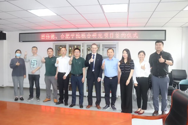 會上,校企雙方負責人就項目基本情況和未來合作方向進行了廣泛交流,達成了重要共識。華建兵院長表示,合肥學院高度重視與西偉德公司的合作,希望以此次項目合作為契機,不斷深化校企合作,期待雙方在人才培養、實驗室建設、新產品開發等方面協同共進、互利共贏。Klaus Bourquin總經理表示,西偉德公司與合肥學院前期有著良好的合作基礎,希望雙方在軌道交通、被動房等領域能夠進一步加強合作,實現共贏。肖新國副主任向合肥學院與西偉德公司簽署合作協議表示祝賀與支持,他希望合作雙方在人才培養、技術轉化等方面全面深化合作力度,實現資源共享,優勢互補。儀式上,石軍兵博士和賈曉輝經理分別代表雙方簽署了合作協議。(城市建設與交通學院 撰稿人:石軍兵 審稿人:祝磊)