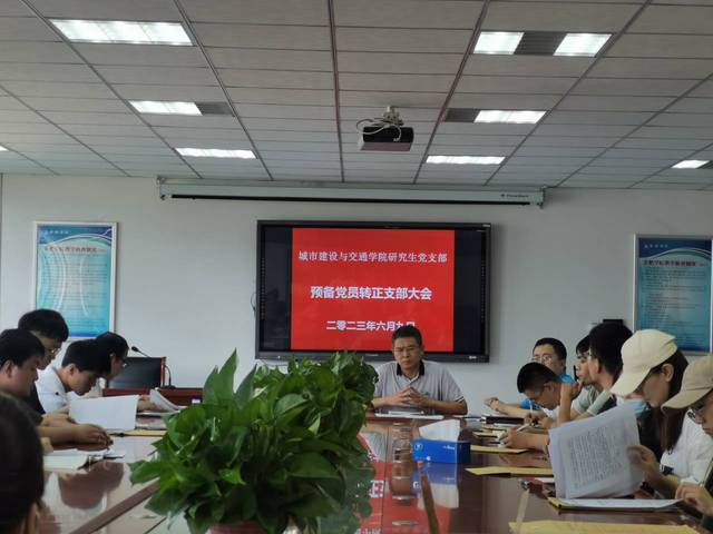 2023年6月9日下午,城市建設與交通學院研究生黨支部預備黨員轉正大會成功召開,支部全體黨員參加會議,院黨委副書記(主持工作)張永軍列席會議。