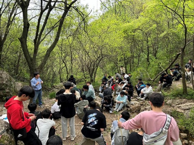 實習期間,帶隊老師以獅子崖逆斷層為切入點,科普了我國重要的深大斷裂帶—郯廬斷裂帶。這條縱貫東北至西南、長達數千公里的構造帶,不僅是地殼運動的重要標志,也是地震活動頻繁的區域。通過對獅子崖逆斷層的深入剖析,學生們得以理解斷裂帶內局部構造的復雜性以及其在大地構造演化中的角色。這種從微觀到宏觀的視角切換,使學生們的地質思維得到拓展,對區域地質穩定性評估有了更為全面的認識。