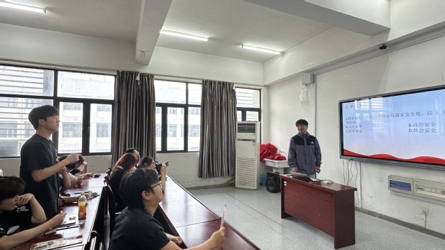 活動伊始,王雨豪首先介紹了“國家安全”的概念、“國家安全”所包含的領域,緊接著從經濟安全、軍事安全、網絡安全等方面,以豐富的案例展示及小問答,向同學們介紹國家安全基本知識。隨后,思政委員宋瑞組織同學們開展以國家安全知識為主題的“誰是臥底”小游戲,同學們熱情高漲,積極參與,活動取得了良好的效果。
