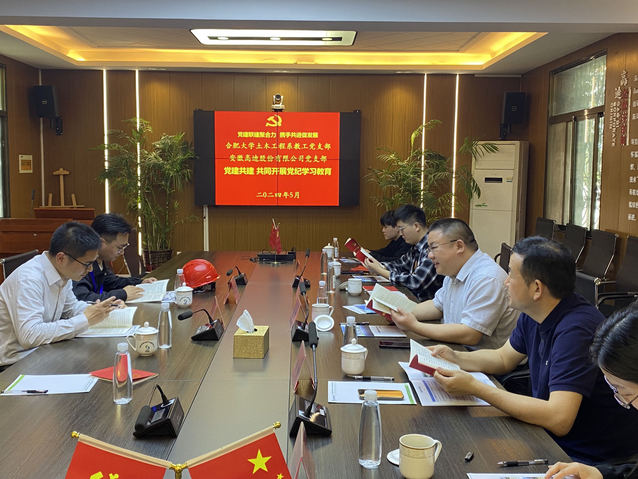 為深入學習貫徹《中國共產黨紀律處分條例》(以下簡稱《條例》),拓展黨紀學習教育形式,推動校企合作深度融合,2024年5月8日上午,城建學院土木工程系教工黨支部與安徽高迪股份有限公司黨支部開展“黨建聯(lián)建聚合力,攜手共進促發(fā)展”黨建共建活動。城建學院副院長劉偉帶隊,支部部分黨員教師參加。