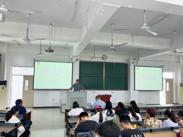 2024年5月24日中午,城市建設與交通學院土木工程系于41棟3JT教室召開21級土木工程專業生產實習動員會。會議由土木工程系主任馬翠玲主持,學院黨委書記張永軍、副院長劉偉、生產實習指導老師及21級土木工程全體學生參加此次動員會。