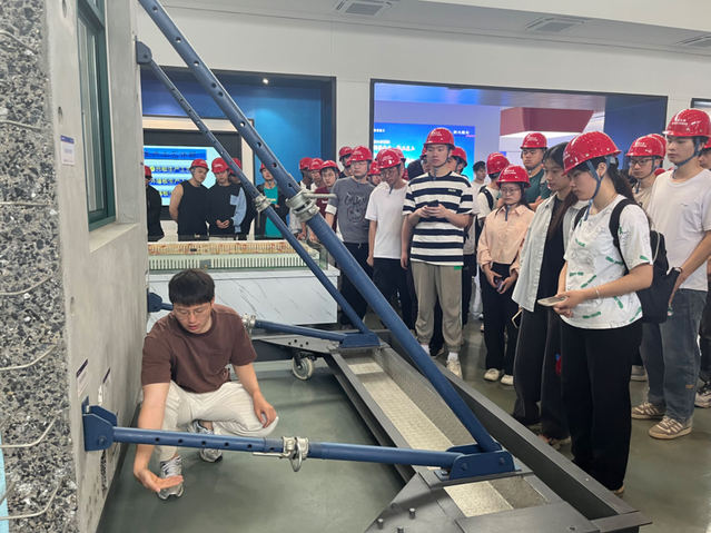 在安徽建工建筑工業有限公司,負責人熱情接待了本院師生,并詳細介紹了裝配式混凝土結構施工工藝和套筒灌漿施工工藝,并帶領同學們參觀了預制疊合板、預制夾心保溫外墻板、預制樓梯等構件的生產廠房。在參觀過程中,同學們認真觀察了各種預制構件的生產過程,并就一些技術問題與現場技術人員進行了深入的交流。他們紛紛表示,通過這次參觀學習,他們對裝配式建筑的施工工藝及流程有了更清晰的認識和深入的了解。