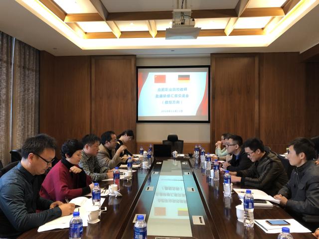 11月11日下午,合肥職業院校教師赴德研修(數控方向)匯報交流會在明月東一大酒店五樓會議室召開。合肥市教育局職成處副處長戈弋、合肥職業院校教師能力發展中心執行主任高艷以及數控方向赴德研修教師參加了匯報交流會。會議由職師中心執行副主任陳國剛主持。