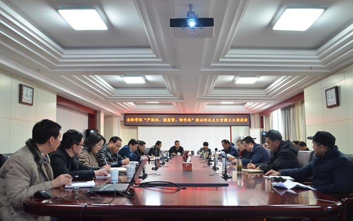 3月11日,學校在行政樓九樓東會議室召開“嚴規(guī)距、強監(jiān)督、轉(zhuǎn)作風”集中整治形式主義官僚主義專項行動推進會。校領(lǐng)導班子成員、校黨委委員、各系部和院直各部門主要負責同志參會,會議由校黨委副書記、校長王其東主持。