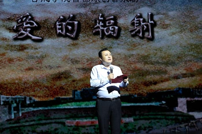 音樂劇開始之前,蔡敬民上臺致辭。他說道:“《愛的輻射》通過藝術(shù)的形式再現(xiàn)了楊承宗先生的大愛和強(qiáng)國夢想,是一部愛國主義藝術(shù)作品。我們要大力弘揚(yáng)社會主義核心價值觀,不忘初心、牢記使命,堅持以人民的利益為最高利益,以報效國家為最高榮耀,把一切力量凝聚到為實現(xiàn)中華民族偉大復(fù)興和中國夢而奮斗的宏偉藍(lán)圖上來。”