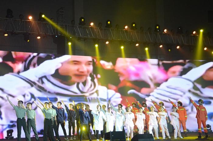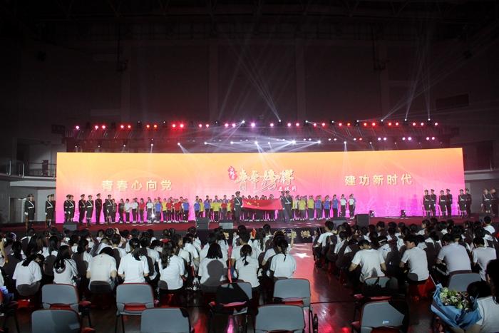 活動最后,全體起立,我校國旗護衛隊送國旗入場,時代楷模、中國青年五四獎章獲得者張劼領誓,全場青年學生一起進行了鏗鏘有力的宣誓。全場一起合唱《歌唱祖國》,在高亢嘹亮的歌聲中,活動圓滿落幕。