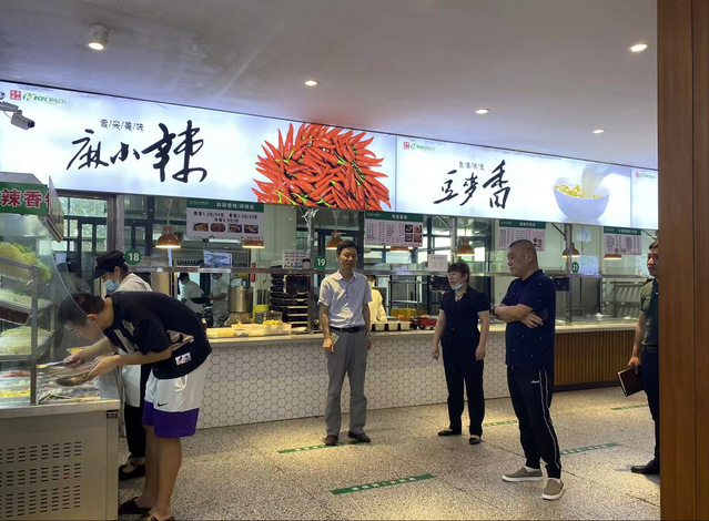 在學(xué)生食堂與教職工食堂,了解暑期食堂供餐安排,重點(diǎn)檢查食品衛(wèi)生安全,查看后廚用具,并對(duì)運(yùn)行機(jī)制、消防隱患等安全防范重點(diǎn)領(lǐng)域進(jìn)行督查。