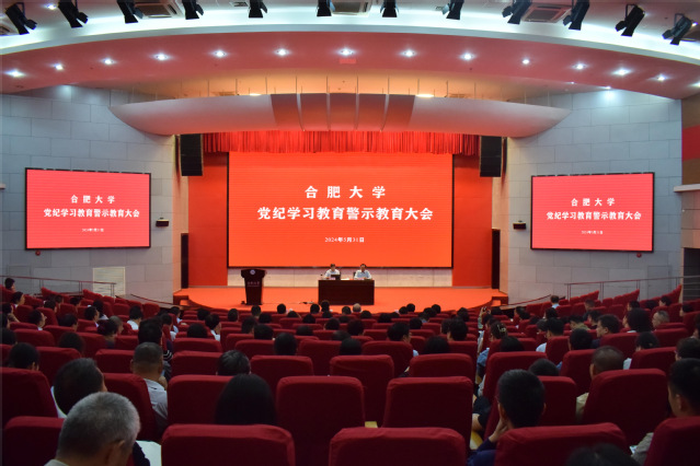 5月31日,校黨委在圖書館學(xué)術(shù)報(bào)告廳A廳召開警示教育大會(huì)。校黨委書記王其東、副校長(zhǎng)陳秀、黨委委員、副校長(zhǎng)白義香出席會(huì)議。省紀(jì)委監(jiān)委第八紀(jì)檢監(jiān)察室三級(jí)調(diào)研員周平應(yīng)邀作《學(xué)習(xí)貫徹<中國(guó)共產(chǎn)黨紀(jì)律處分條例> ,為高校高質(zhì)量發(fā)展提供堅(jiān)強(qiáng)保障》的專題警示教育輔導(dǎo)報(bào)告。校黨委委員、紀(jì)委書記、省監(jiān)委駐合肥大學(xué)監(jiān)察專員吳功福主持會(huì)議。科級(jí)以上領(lǐng)導(dǎo)干部、機(jī)關(guān)黨委和二級(jí)學(xué)院黨委委員和紀(jì)委委員、各教工黨支部書記、直屬黨支部紀(jì)檢委員參加會(huì)議。
