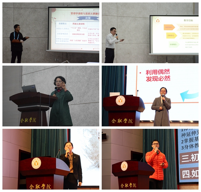 此次教學大賽分學院初賽和學校決賽,經過各教學單位初賽和推薦,共35名教師晉級決賽。大賽分文科組和理科組分別進行,參賽課程包含基礎課、專業課等各類課程,涵蓋了理學、工學、文學、管理等多個學科。各參賽教師精心準備,從自己的學科特點出發,深入挖掘了各門課程蘊含的思政元素和所承載的育人功能,分別從說課和教學展示兩部分進行了闡述,既講解專業知識,又啟迪學生做人做事的人生道理,把思想政治教育的內涵恰到好處地融入到課堂教學中,現場氣氛活潑熱烈,選手的精彩表現不時贏得現場觀眾的陣陣掌聲。經過激烈角逐與評審,共評出一等獎2名、二等獎4名、三等獎9名,優秀組織獎2個。