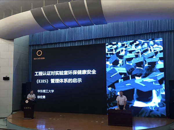 19日下午,特邀專家徐宏勇教授蒞臨理工科系部實驗室參觀并現場指導工作。20日培訓會在學術報告廳A廳正式開幕,副校長劉建中、教務處處長王曉峰、教務處副處長葛春梅出席。王曉峰處長主持開幕式并代表學校歡迎三位特邀專家齊聚我校,探討高校安全化實驗室建設問題。隨后,三位特邀專家分別作了專題報告,華東理工大學安全環保辦公室主任、實驗室與裝備處副處長徐宏勇教授演講的內容是《工程認證對高校環保健康安全(EHS)管理體系的啟示》,中國礦業大學環境實驗室主任、博士、碩士生導師白向玉副教授演講的內容是《高校安全化實驗室的探索與實踐》,杭州電子科技大學國有資產與實驗室管理處處長、能量利用系統與自動化研究所所長、博士、博士生導師姜周曙教授演講的內容是《高校實驗室安全研究與探索》。