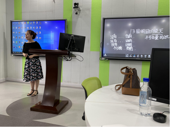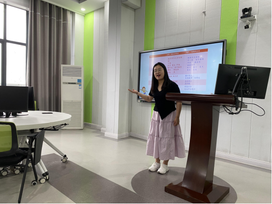 為了檢驗前三次的專業(yè)實訓成果,進一步鞏固專業(yè)理論知識,適應(yīng)教師角色,我院于7月2日上午8時20分在二區(qū)35棟305智慧教室正式舉行實訓項目四——小組成果展示。教育學院小學教育專業(yè)負責人陳媛老師擔任此次活動的指導老師。共有四個小組,每組選出兩名同學作為代表依次進行成果展示。 展示現(xiàn)場,各代表準備充分,儀態(tài)大方,教學內(nèi)容豐富,還將現(xiàn)代信息技術(shù)融入課堂教學中,應(yīng)用自如,達到了良好的教學效果。 對乘法的認識和平均數(shù)的趣味講解,通過導入生活中的數(shù)學素材和系列的推算演示,讓抽象性、邏輯性強的數(shù)學課變得生動直觀。在講解《記金華的雙龍洞》和《慢性子裁縫和急性子顧客》時,從情景導入、整體感知、情感體會到拓展延伸,循序漸進,層層深入,引導學生的思維和學習方式。