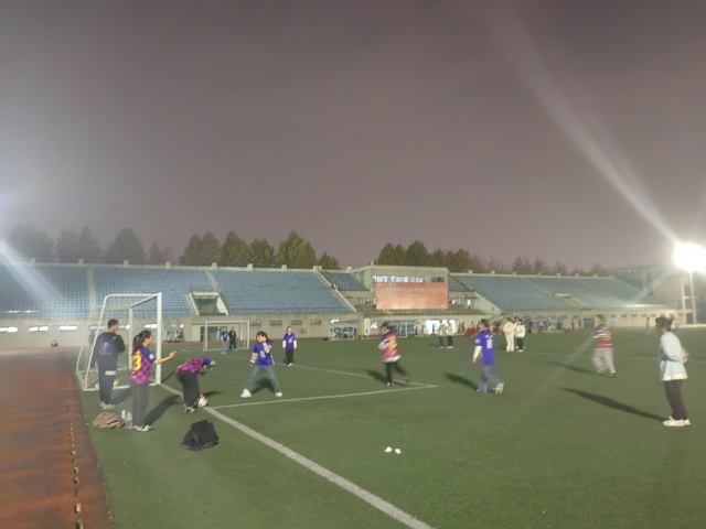 11月26日晚19時教育學院女足一隊于二期操場和經濟與管理學院女足隊進行了女足新生杯比賽。