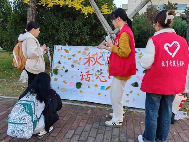為了增強(qiáng)同學(xué)們的心理健康意識,幫助大家更好地應(yīng)對生活中的困難和挑戰(zhàn),11月20日至21日,教育學(xué)院陽光心理志愿服務(wù)隊在一期東門處舉辦了“落葉寄心語”活動。 本次活動的主題是“落葉心語”,旨在通過一系列豐富多彩的活動,讓大家了解自己的內(nèi)心世界,增強(qiáng)心理素質(zhì),提高生活質(zhì)量。在這次的活動中,首先志愿者們組織參加活動的同學(xué)在校園內(nèi)收集各種形狀、顏色的樹葉,并和他們一起把樹葉粘貼在展板上,讓他們感受大自然的美妙與變化。接下來志愿者們積極邀請同學(xué)制作心情卡片,將自己的心情、感受和期望以文字或繪畫的形式表達(dá)出來,以便更好的了解自己的內(nèi)心世界。最后,志愿者們向同學(xué)們介紹一些心理健康知識,幫助大家認(rèn)識自己的情緒和心理狀態(tài),提高心理素質(zhì)。 培養(yǎng)健康心理,感受生命意義。在這次的活動中,不僅可以讓同學(xué)們感受校園的美好風(fēng)光,走近和熱愛大自然也讓他們能夠在活動中釋放壓力,提高心理素質(zhì),在生活和學(xué)習(xí)中能夠做一個快樂的積極向上的人。(撰稿:宋佳琪 張雪云,審稿:張弦樂) |