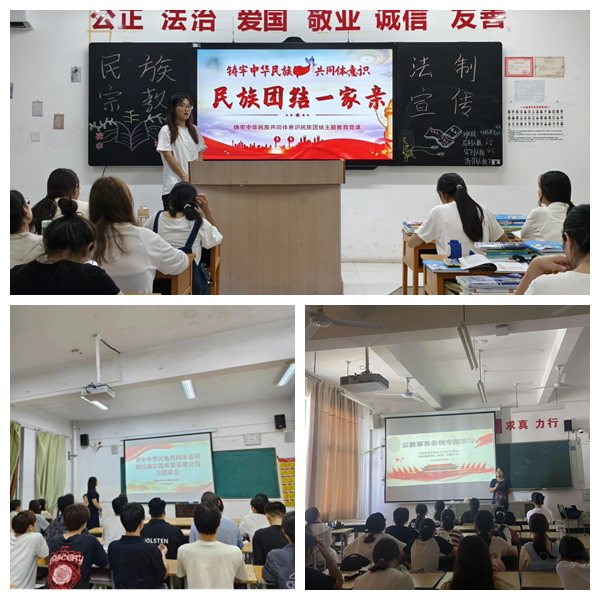 為深入貫徹落實黨的二十大精神,進一步增強廣大學生對中華民族共同體意識的理解,同時加強對民族宗教政策法規的宣傳教育,我院各班于2024年5月開展了“鑄牢中華民族共同體意識”宣傳主題班會。 班會上,各班宣講人首先向同學們介紹了中華民族共同體的基本概念和形成歷程,強調了鑄牢中華民族共同體意識在新時代背景下的重大意義。其次,圍繞如何更好地傳承和弘揚中華民族優秀傳統文化、如何促進各民族之間的交流融合等議題展開了深入的講述。 隨后,各班進行了民族宗教政策法規宣傳,向學生們普及了我國的民族宗教政策法規,包括民族平等、民族團結、宗教事務管理等方面的基本原則和具體規定。 此次主題班會的順利開展進一步增強了學生對中華民族共同體意識的認識和理解,為今后更好地踐行民族團結、宗教和諧理念奠定了堅實基礎。我院學生紛紛表示,通過這次學習,他們不僅對民族宗教政策法規有了更加全面深入的了解,也更加堅定了維護民族團結、促進宗教和諧的信念。(撰稿:羅鑫、彭錦 初審:符琳 復審:王迅 終審:劉良宏) |