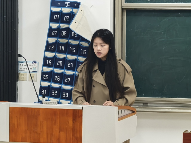 首先,古艷從“歷史沿革”角度引入,勉勵當代青年要傳承先輩們的精神火炬,于時代浪潮中奮勇啟航。同時,以“理論內涵”為切入點,引領同學們深入探討“青年運動發展”的作用與意義,強調大家堅定理想信念,積極投身實踐鍛煉。接著,圍繞“青年力量對社會進步貢獻”的主題,從青年創新驅動發展、青年志愿服務社會、青年文化傳承與創新和青年國際交流使者四個方面進行深入講解,結合實例深入淺出地講授基層實踐經驗的重要性。最后,闞欣月呼吁青馬班全體成員,在這充滿機遇與挑戰的時代,傳承先輩們的拼搏精神,在科技創新的前沿不斷探索。