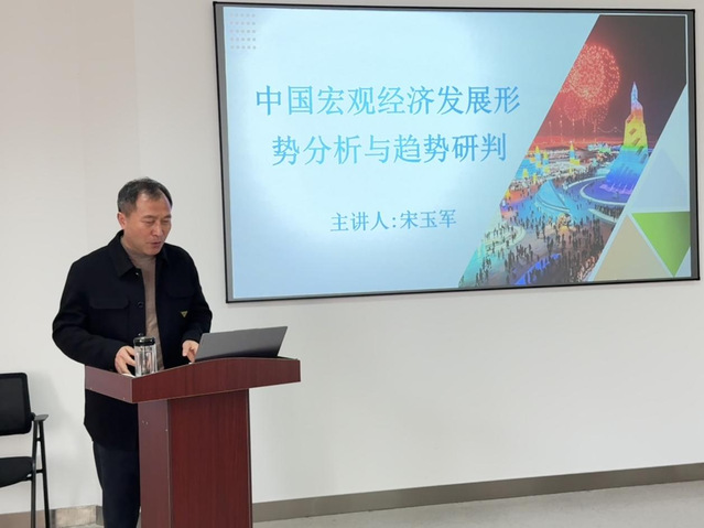 為深入學(xué)習(xí)習(xí)近平新時代中國特色社會主義思想,全面貫徹落實黨的二十大和二十屆二中、三中全會精神,準(zhǔn)確把握當(dāng)前經(jīng)濟(jì)形勢,提升黨員師生服務(wù)國家戰(zhàn)略的使命擔(dān)當(dāng),4月2日下午,旅游與會展學(xué)院院長宋玉軍以“中國宏觀經(jīng)濟(jì)發(fā)展形勢分析與趨勢研判”為題,為全院學(xué)生黨員講授專題黨課。