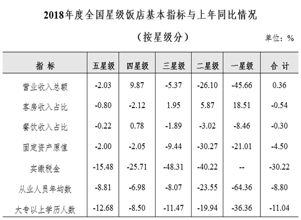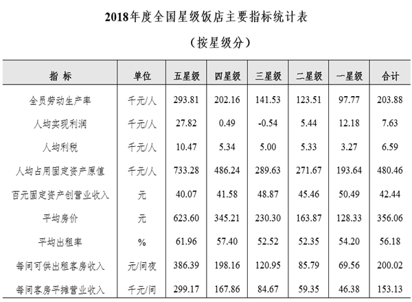 據(jù)中華人民共和國(guó)文化和旅游部發(fā)布的消息,截至2018年底,全國(guó)星級(jí)飯店統(tǒng)計(jì)管理系統(tǒng)中共有10249家星級(jí)飯店,其中一星級(jí)70家,二星級(jí)1844家,三星級(jí)4965家,四星級(jí)2527家,五星級(jí)843家。完成填報(bào)的為9994家,填報(bào)率為97.51%。