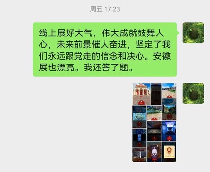 展覽圍繞“奮進新時代”這一主題,聚焦新時代十年黨和國家事業(yè)的偉大成就、偉大變革。從脫貧攻堅到抗擊疫情,從種業(yè)振興到科技仿生,從深空探測到大國巨艦等。在安徽單元展區(qū),展覽貫穿“學(xué)習(xí)貫徹習(xí)近平總書記重要講話指示精神”這條主線,圍繞“建設(shè)經(jīng)濟強的創(chuàng)新安徽、建設(shè)格局新的共進安徽、建設(shè)環(huán)境優(yōu)的美麗安徽、建設(shè)活力足的開放安徽、建設(shè)百姓富的幸福安徽”五個部分全面展開。參觀過程中,老師們紛紛表示感受了新時代十年的“皖美之變”,直觀感受了黨和國家事業(yè)發(fā)展的新局新貌,大家都為家鄉(xiāng)各項工作取得的歷史性新成就新進展而感到自豪。