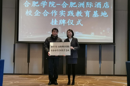 張應(yīng)杰和陳婕代表校企雙方舉行了“合肥學(xué)院校企合作實(shí)踐教育基地”授牌儀式。陳丹介紹了校企合作實(shí)踐教育基地建設(shè)框架。張應(yīng)杰對(duì)洲際酒店支持學(xué)院就業(yè)實(shí)習(xí)工作表示感謝,他表示對(duì)旅游行業(yè)和酒店行業(yè)的發(fā)展充滿信心,希望畢業(yè)生在企業(yè)中能夠堅(jiān)持務(wù)實(shí)、奮進(jìn)的態(tài)度,在行業(yè)中不斷成長(zhǎng)。