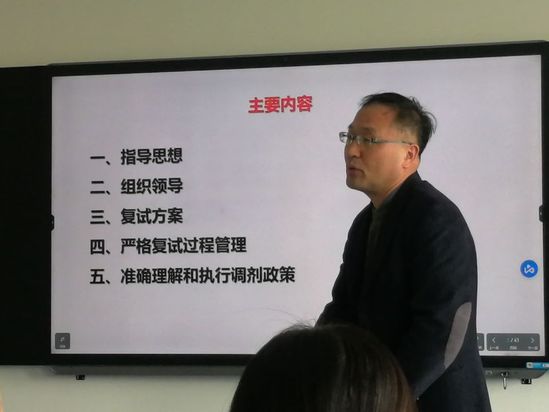 培訓會上,高大明教授解讀了研究生招生的指導思想和國家政策,對我校研究生復試工作做了詳細說明,強調了復試過程中的規范流程、注意事項和紀律要求,并結合我院MTA復試面試工作進行了具體分析,培訓結束后,高大明教授在現場針對大家提出的問題進行了深入的互動交流。