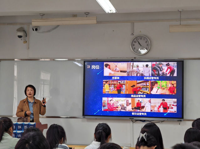 宣講會上,顧部長從“走進華強、蕪湖方特旅游度假區(qū)、快樂在方特”三個方面展開介紹。首先,顧部長詳細介紹了華強集團,特別是華強集團隸屬的8家企業(yè),并邀請在座的同學前往華強集團工作。其次,通過PPT向大家介紹了蕪湖方特主題樂園的發(fā)展狀況、已有的四期主題樂園及各期公園的特點和特色項目。隨后,顧部長還為大家詳細介紹了實習的內(nèi)容、工作環(huán)境、福利待遇及要求等,并為學生們答疑解惑。顧部長引用方特的主題“方特成就歡樂夢想”結(jié)束了宣講會。
