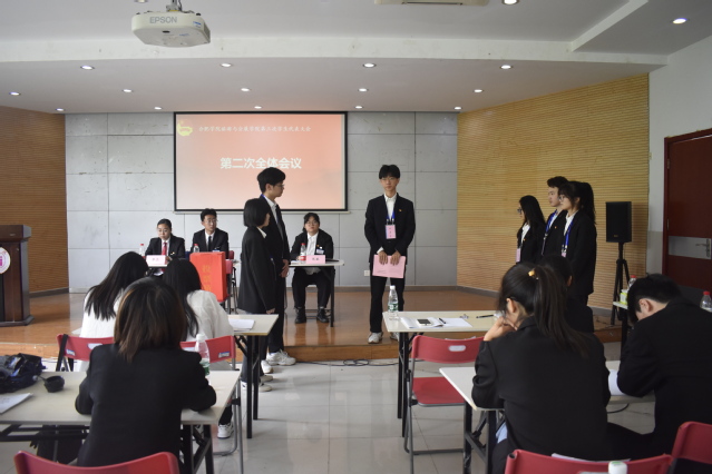 合肥學院旅游與會展學院第三次學生代表大會第二次全體會議于6月3日在大學生活動中心二順利舉行。出席本次會議的有旅游與會展學院團委負責人戴路老師,團委第十九屆學生會主席成員兼第二屆學生委員會委員徐婧宇、牛振宇、張敏以及學代會全體正式代表,大會由徐婧宇主持。