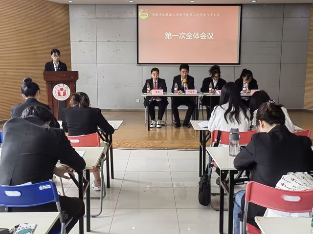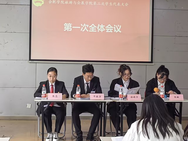 合肥學(xué)院旅游與會展學(xué)院第三次學(xué)生代表大會第一次全體會議于6月3日在大學(xué)生活動中心二順利召開。出席本次的有旅游與會展學(xué)院團(tuán)委學(xué)生兼職副書記張蕊、第十九屆學(xué)生會主席團(tuán)成員牛振宇、徐婧宇、張敏以及全體學(xué)生代表。會議由朱燦韻主持。