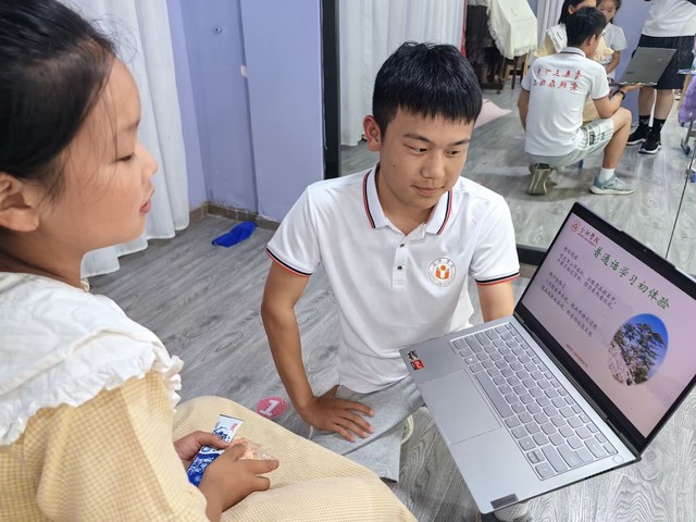 上午,實踐團隊到達西塢村,據相關負責人介紹,西塢馬燈是傳承較為完整的一種大型民俗舞蹈,它以竹篾為骨,再以彩紙裱糊而成,是安徽省級非物質文化遺產,至今已經流傳了150多年。西塢馬燈使大家感受到廣德蘊藏著豐富的非物質文化遺產,和其遵循創新和發展的理念,讓非遺文化“活”了起來。下午,團隊前往柏墊鎮小學生暑期托管中心開展普通話推廣活動,孫靜濤同學采用理論知識講解與搶答游戲相結合的方式,增強小朋友對普通話學習的興趣,引領他們敢說普通話、說好普通話。活動中,他向小朋友們講解了什么是普通話、推廣普通話的意義以及如何講好普通話等問題。為增加活動的趣味性,成員們開展了“讀詞語”、“繞口令”和“古詩背誦”等趣味活動,并為參與游戲的小朋友分發獎品,提高了小朋友們的積極性。