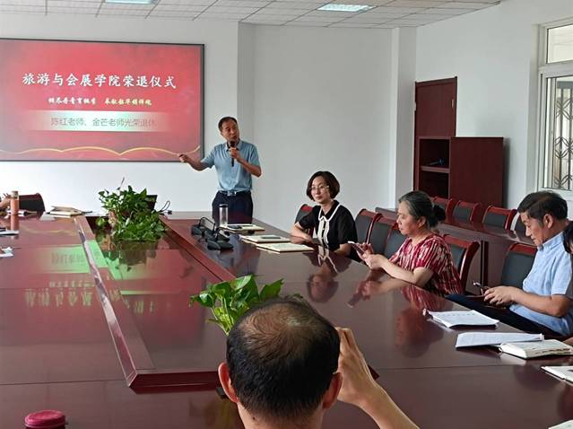 不忘春風桃李,致敬歲月芳華。7月13日上午,旅游與會展學院在2號樓會議室為陳紅老師和金芒老師舉辦榮退儀式。學院班子成員、全體教師參加榮退儀式。