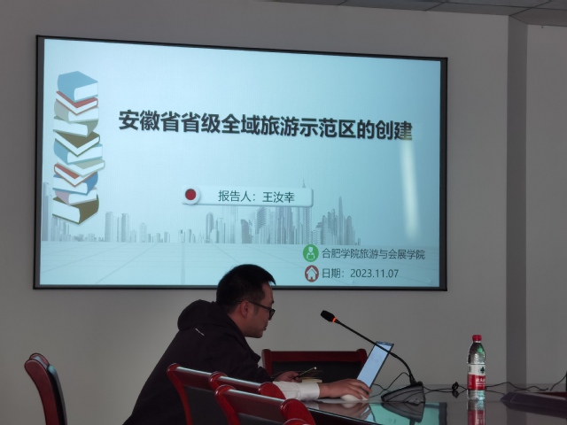 在橫向課題方面,王汝幸老師結合個人橫向課題的工作經驗,為在座的老師作了題為“安徽省省級全域旅游示范區的創建”的專題講座。從背景到程序以及工作的開展等進行解讀,播放了申報要求的視頻,介紹了為銅陵市義安區打造省級全域旅游示范區的工作過程,并談及科研中遇到的困難以及如何克服困難等內容,分享了橫向課題取得階段性成功時的心得。