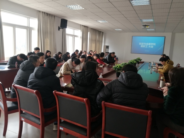 2月27日下午,旅游與會展學院于博學樓A座二樓會議室召開新學期全體老師大會,全面布置新學期各項工作。