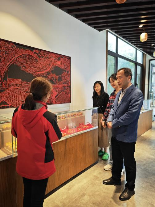 在六家畈旅游度假區民宿管家介紹下,宋院長一行參觀考察了畈塘拾吾舍、畈塘養正院、研學館、蘭僑匯、吳氏故居等。通過參觀考察,對六家畈村的發展歷程、六家畈文化旅游發展有限公司的企業文化及業務領域有了更直觀的認識。隨后,六家畈文旅公司的運營部負責人胡學樹詳細介紹了公司的業務范圍、人才需求和職業發展路徑,強調了旅游管理專業畢業生在公司中的重要作用。之后,宋玉軍院長、高騰主任分別介紹了學校及學院的人才培養、實習實踐及服務地方的相關情況,并表達了希望進一步合作交流的想法。