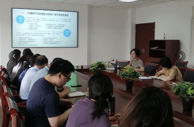 為深入學習貫徹習近平總書記關于加強黨的紀律建設重要論述以及關于黨紀學習教育重要講話和重要指示精神,推進黨紀學習教育走深走實,5月21日,旅游與會展學院黨委書記黃雄英以“《中國共產黨紀律處分條例》主要內容解讀”為題,在學院會議室為全院教師黨員講了一堂專題黨課。