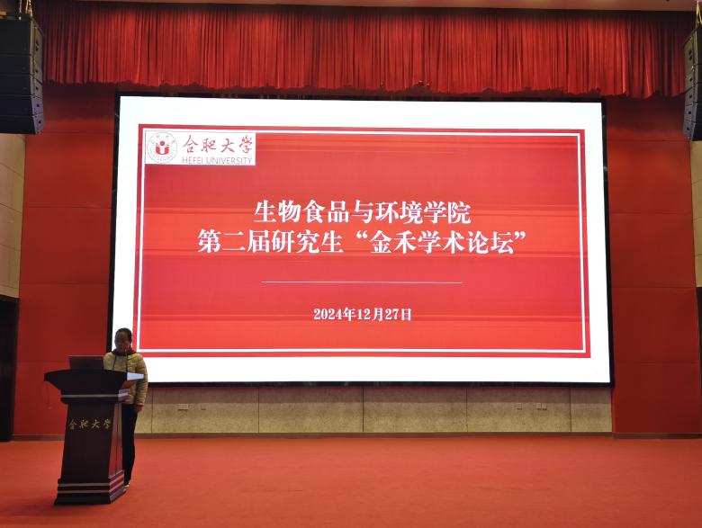 為進一步加強研究生學風建設,營造濃厚的學術研究氛圍,12月27日,生物食品與環境學院舉辦第二屆研究生“金禾學術論壇”。合肥工業大學王軍輝、安徽建筑大學唐建設、安徽中醫藥大學黃鵬受邀擔任評委。研究生處處長葛春梅、生物食品與環境學院副院長(主持工作)阮班鋒、副院長笪春年以及生物食品與環境學院全體研究生參加活動。論壇由研究生輔導員葛遠飛主持。