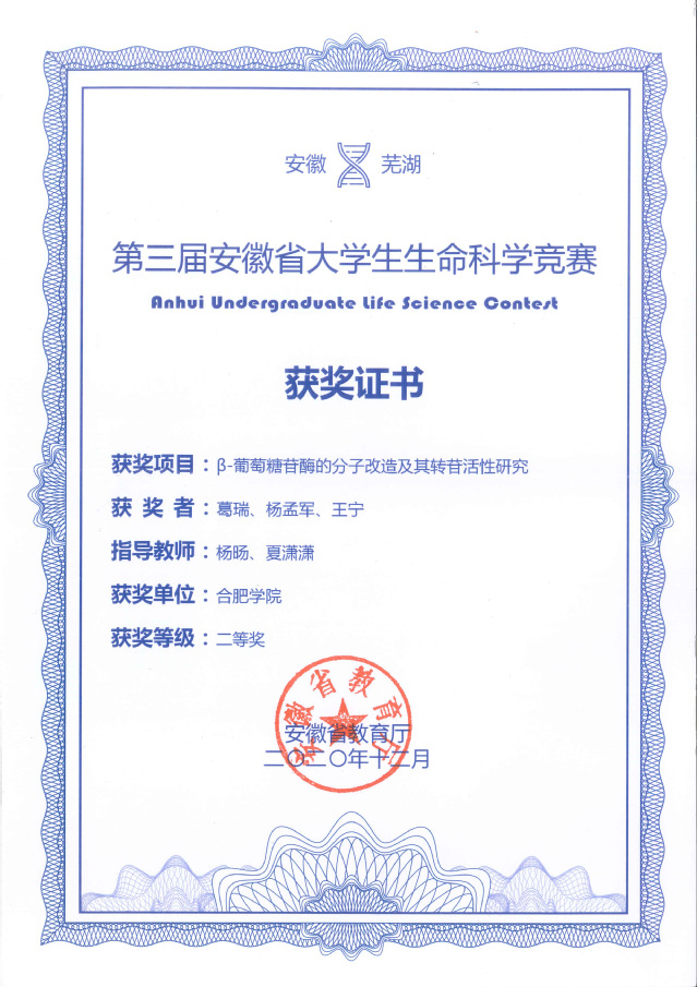第四屆全國大學生生命科學競賽暨第三屆安徽省大學生生命科學競賽
