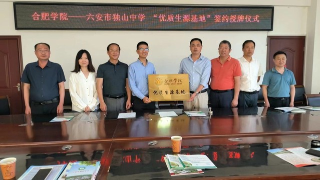 座談會(huì)后,雙方進(jìn)行了合肥學(xué)院和獨(dú)山中學(xué)“優(yōu)質(zhì)生源基地”簽約授牌儀式。黃永富副校長(zhǎng)表示將通過(guò)“優(yōu)質(zhì)生源基地”的平臺(tái)建設(shè)增強(qiáng)兩校之間的溝通、交流與合作。