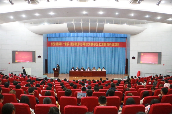 11月6日,合肥學院團校第二十期青馬工程培訓班暨習近平新時代中國特色社會主義思想青年研習會成立典禮在合肥學院學術報告廳A順利舉行。紀委書記洪家友,黨委委員、組織部部長張宇建,黨委委員、宣傳部部長劉樟樹,學工部、學生處處長董承軍,馬克思主義學院院長胡艷萍,馬克思主義學院老師蘇冰應邀出席典禮,團委書記杜娟主持成立典禮。