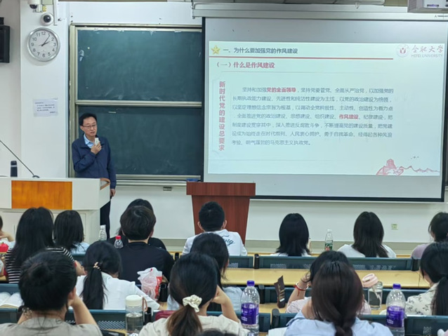 5月15日下午,校黨委委員、紀委書記、省監委駐合肥大學監察專員吳功福走進課堂,以“深入學習貫徹習近平總書記關于加強黨的作風建設的重要論述”為題,為2023級小學教育專業的大學生講授了一堂精彩的思政課。 吳功福重點從為什么要加強黨的作風建設、深入領會習近平總書記關于加強黨的作風建設的重要內涵和精神實質、加強黨的作風建設的切入口和動員令:八項規定何以改變中國、作風建設永遠在路上等四個方面展開授課。通過理論闡釋與案例教學,視頻、圖片等元素的融入,吳功福對于習近平總書記關于加強黨的作風建設的重要論述作了系統、深入的闡述與講解,引發同學們強烈的思想共鳴。 思政課是落實立德樹人根本任務的關鍵課程。校領導走上思政課講臺,是深入貫徹落實習近平總書記關于學校思政課建設的重要指示精神,充分發揮思政課鑄魂育人主渠道、主陣地作用的重要舉措,為推動學校思政教育高質量發展提供了有力的保障。(圖/文:陶德強) |
