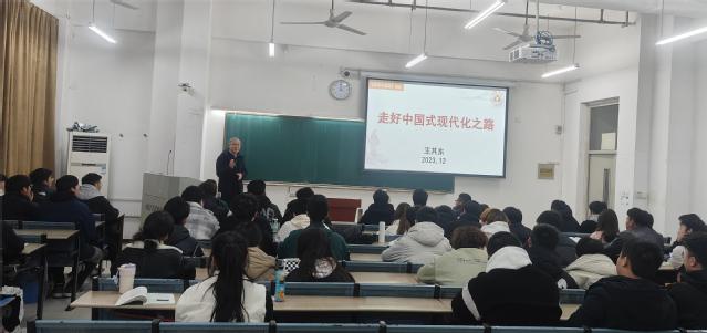 王其東書記圍繞中國式現代化的歷史演變、發展現狀展開授課。他首先回顧了近代百年在黨領導下中國人民探索中國式現代化的漫漫長路,講述了新中國成立后特別是改革開放以來的理論探索和實踐活動,重點講述了黨的十八大以來成功推進和拓展中國式現代化取得的變革與成就。接著,深入闡述了中國式現代化的基本特征,是人口規模巨大的現代化,是全體人民共同富裕的現代化,物質文明和精神文明相協調的現代化,人與自然和諧共生的現代化,走和平發展道路的現代化。然后,全面分析了中國式現代化與西方現代化的本質區別,讓學生充分認識到,世界上既不存在定于一尊的現代化模式,也不存在放之四海而皆準的現代化標準,一個國家,一個民族,只有找到適合自己條件的道路,才能實現自己的發展目標。最后,王書記對青年在實現中國式現代化的重要作用提出四點希望,希望學生們要立大志,用理想之光照亮青春奮斗之路;要明大德,以崇德修身啟潤青春向善追求;要成大才,讓增長本領成就青春搏擊力量,擔大任,以敢于擔當書寫青春壯麗篇章。