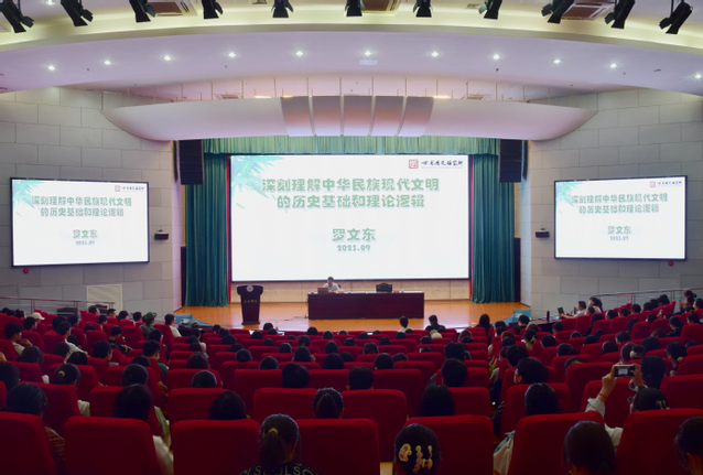 我校邀請羅文東教授在南艷湖大講堂作學術報告 9月24日下午,由科研處和馬克思主義學院主辦、校科協和社科聯協辦的“深刻理解中華民族現代文明的歷史基礎和理論邏輯”學術報告會在圖書館報告廳A廳舉辦。中國社會科學院世界歷史研究所研究員、中國社會科學院大學博士生導師羅文東教授應邀作學術報告,院長吳春梅出席并主持,馬克思主義學院部分教師和語言文化與傳媒學院本科生、研究生共150余人參會。 羅文東以習近平總書記考察中國歷史研究院、參觀中國考古博物館的相關講話精神為切入點,詳細闡明了中華民族現代文明深厚的歷史淵源和文化根基,深刻論述了中華民族現代文明獨特的發展道路和本質屬性,精準指明了建設中華民族現代文明的指導思想和根本遵循,引導與會師生深刻理解中華民族現代文明的歷史基礎和理論邏輯。 報告會結束后,師生圍繞青年擔當使命、堅守文化信仰、甄別多元思想等方面積極提問,羅文東做出了精彩的回答。本次報告會使參會師生受益匪淺,進一步拓寬了學生的知識眼界和教師的研究視域。吳春梅在總結發言中表示,羅文東教授的學術觀點高屋建瓴、學術主題意涵豐富、學術指向高瞻遠矚,給我校師生帶來了一場精彩紛呈的學術盛宴,對推進我校學科專業建設、激發教師隊伍科研熱情起到了積極的推動作用。(科研處 馬克思主義學院 校社科聯) |