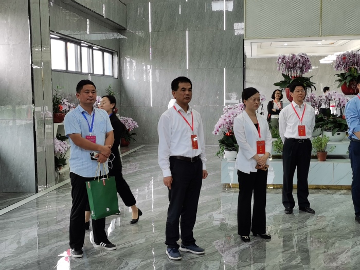 展銷會期間,在當地黨、政負責人的陪同下,盧平與省屬單位參會的領導們一起,興致勃勃地參觀了泗縣研發中心。
