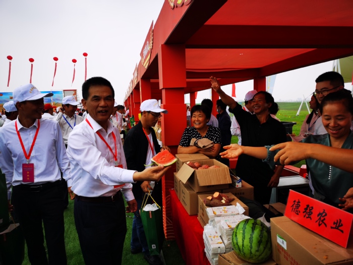 當得知我校幫扶村惠廟村緣來緣家庭農場的甜瓜、陡張村德強農業的蜜芋、定向采購點安徽達園糧油全都躋身本屆農特產品參展會,盧平興致勃勃地來到展臺前,與企業負責人和員工交流起了“農業經”和“致富路”。