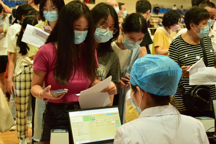 接種現(xiàn)場,師生在志愿者的引導(dǎo)下有序排隊,如實填寫知情同意書,進行疫苗建檔,醫(yī)護人員對接種人員的身體狀況進行科學(xué)評估,并提供健康咨詢,接種現(xiàn)場秩序井然。