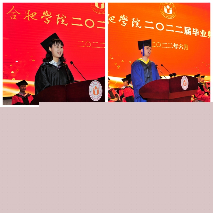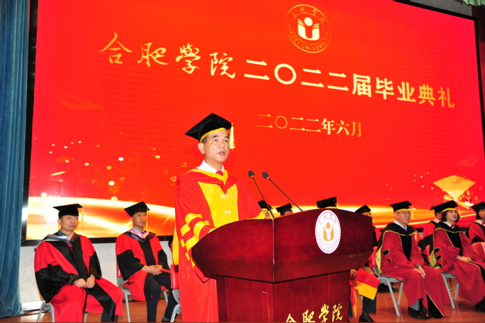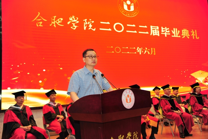 校長、校學(xué)位評定委員會主席吳春梅教授代表學(xué)校對同學(xué)們圓滿完成學(xué)業(yè)表示熱烈祝賀。在給2022屆畢業(yè)生的寄語中,她談道:“我們攜手走過不可復(fù)制的旅途、擁有獨一無二的回憶。四年來,我們共同經(jīng)歷了國家大事要事,從國慶閱兵的震撼人心到建黨百年的榮光輝煌,從疫情下白衣為甲、逆行出征到高原上寸土不讓、誓言鏗鏘。四年來,我們共同推動合肥學(xué)院高速發(fā)展,2018年整體進入安徽省第一批次招生,2019年16個專業(yè)榮獲首批國家級省級一流本科專業(yè)建設(shè)點,2020年大學(xué)更名取得重要進展,2021年碩士點建設(shè)實現(xiàn)跨越性發(fā)展,2022年“三業(yè)一體”人才培養(yǎng)模式推深做實。四年來,我們共同見證同學(xué)們成長蛻變,2022屆畢業(yè)生大多出生在新世紀(jì),生來就被寄予了新世紀(jì)的希望,雖遭遇百年疫情,但同學(xué)們積極配合學(xué)校防疫措施,在堅守中學(xué)習(xí),在抗疫中成長,構(gòu)筑起校園安全的堅強屏障……”
