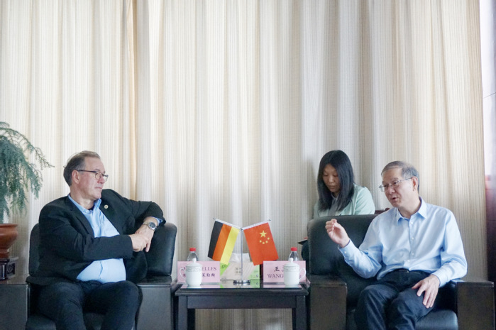 王其東對萊勒斯的來訪表示熱烈歡迎,他詳細介紹了學校近三年來在學科建設及專業發展方面的進展,希望學校與羅斯托克大學在生物質利用及研究領域的合作能做實做強。